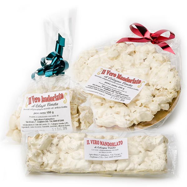 “Il vero e originale mandorlato di Cologna Veneta, lavorato secondo un’antica ricetta artigianale con miele di acacia di nostra produzione e mandorle di prima qualità.”
