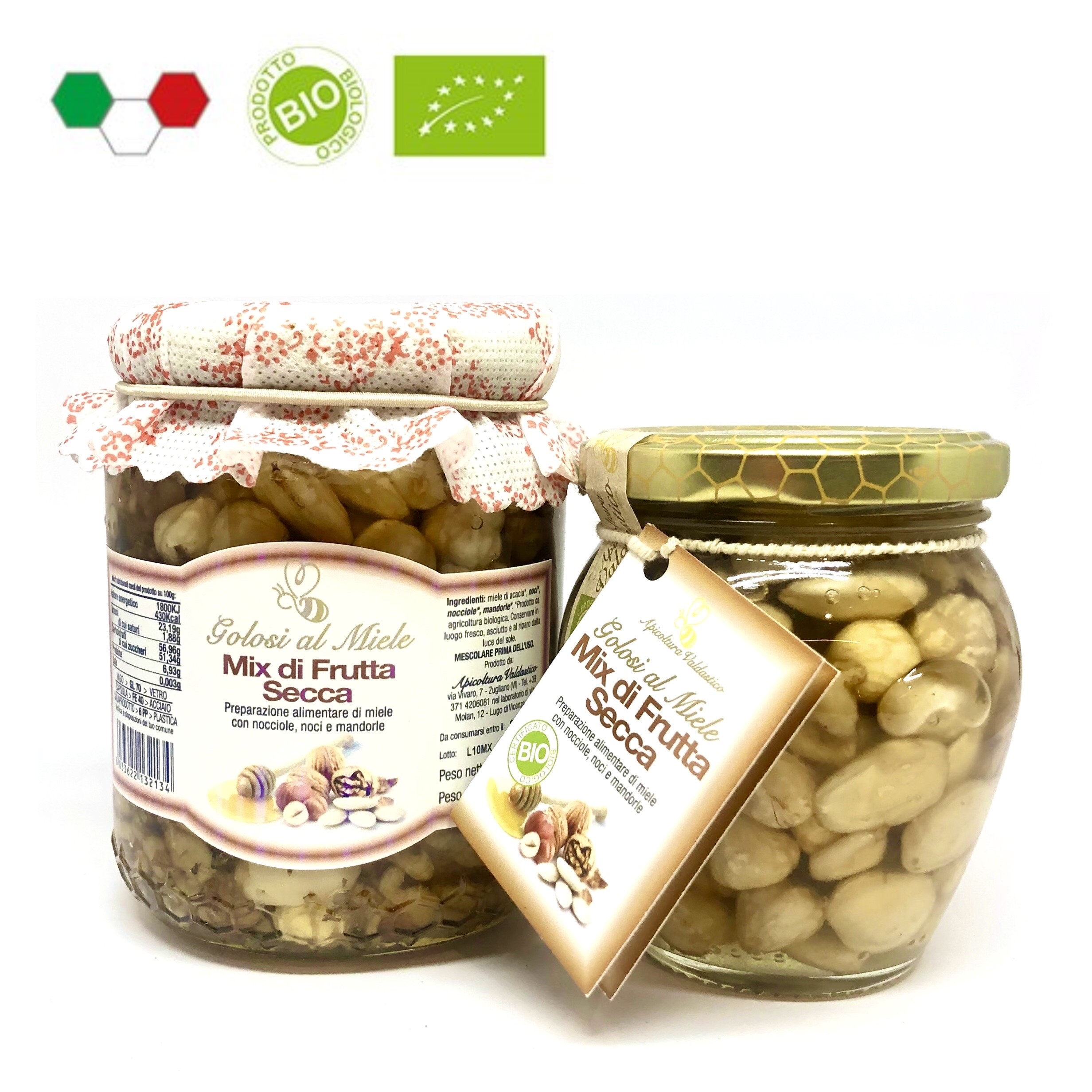 “Autentiche golosità a base di miele di acacia con noci, nocciole e mandorle da agricoltura biologica.”