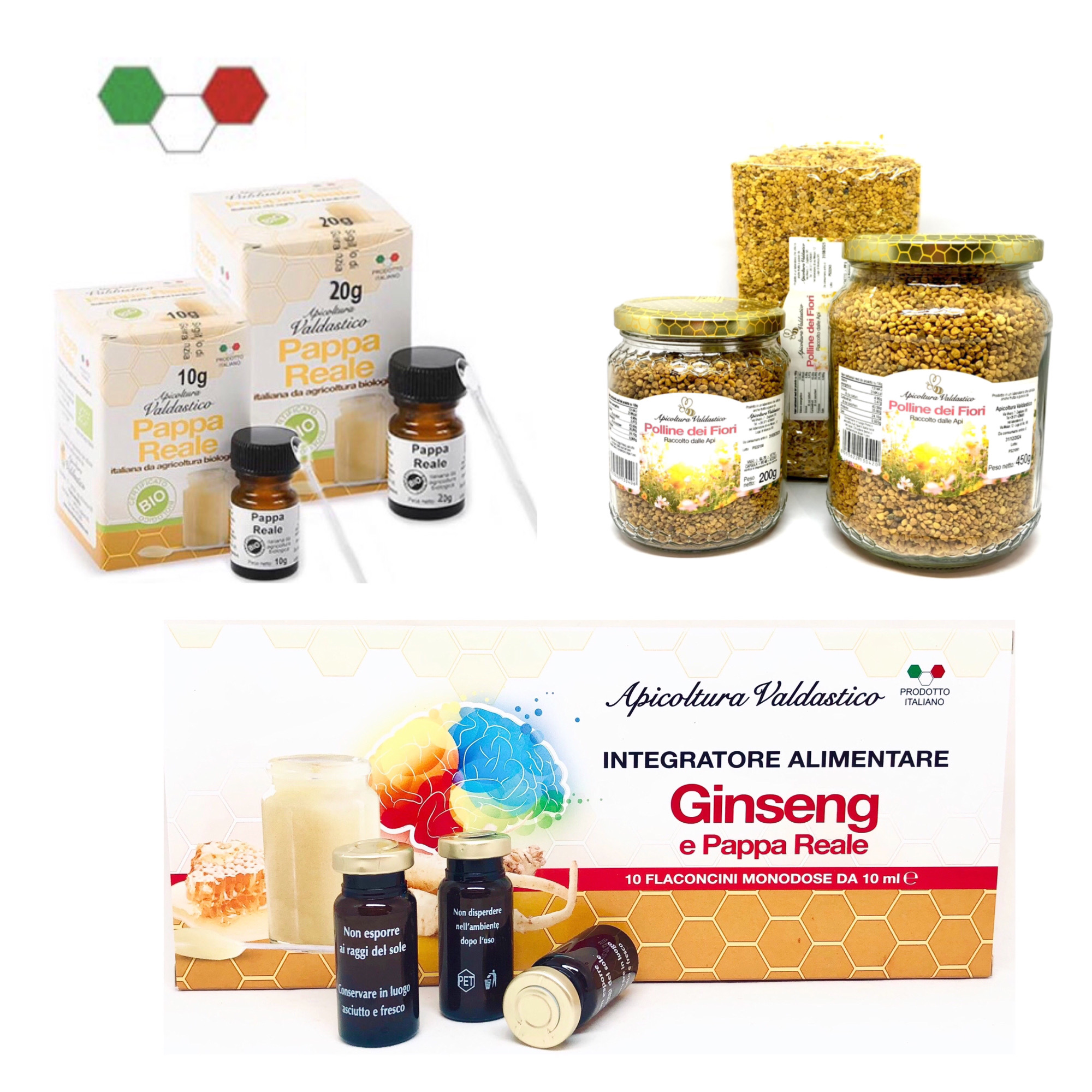 “Prodotti energetici a base di pappa reale, polline, miele, propoli, ginseng.