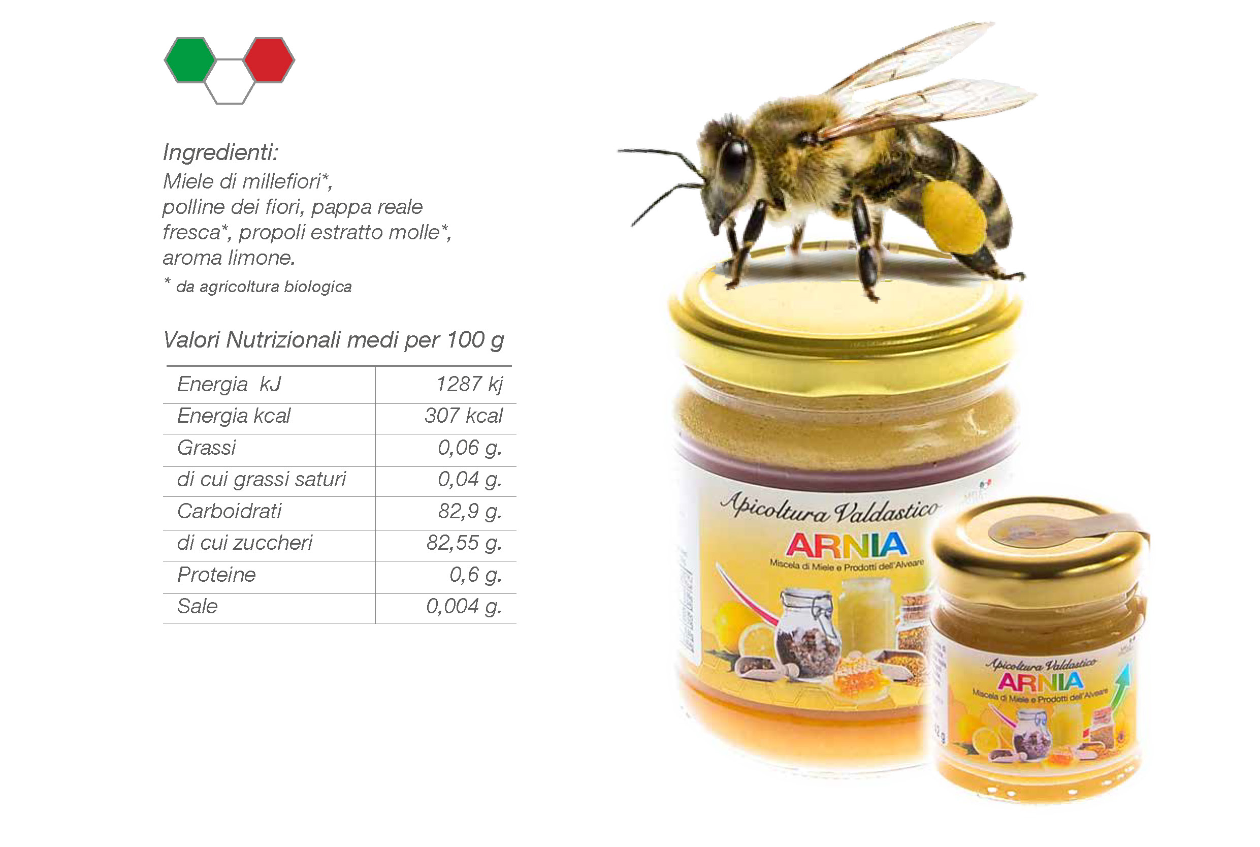 Miscela di miele, polline, pappa reale e propoli pronta all’uso.