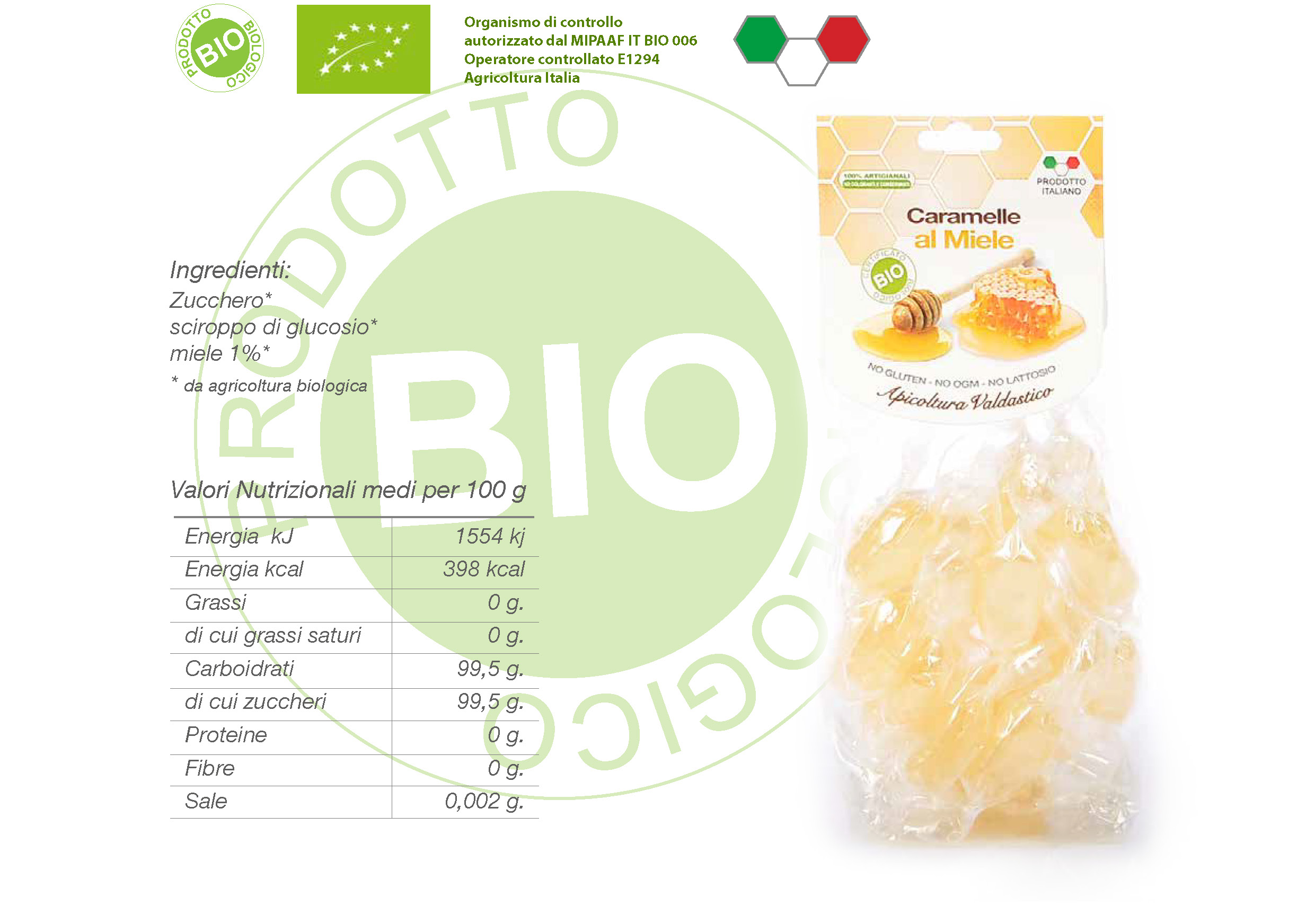 Caramelle incartate al miele certificate BIO.