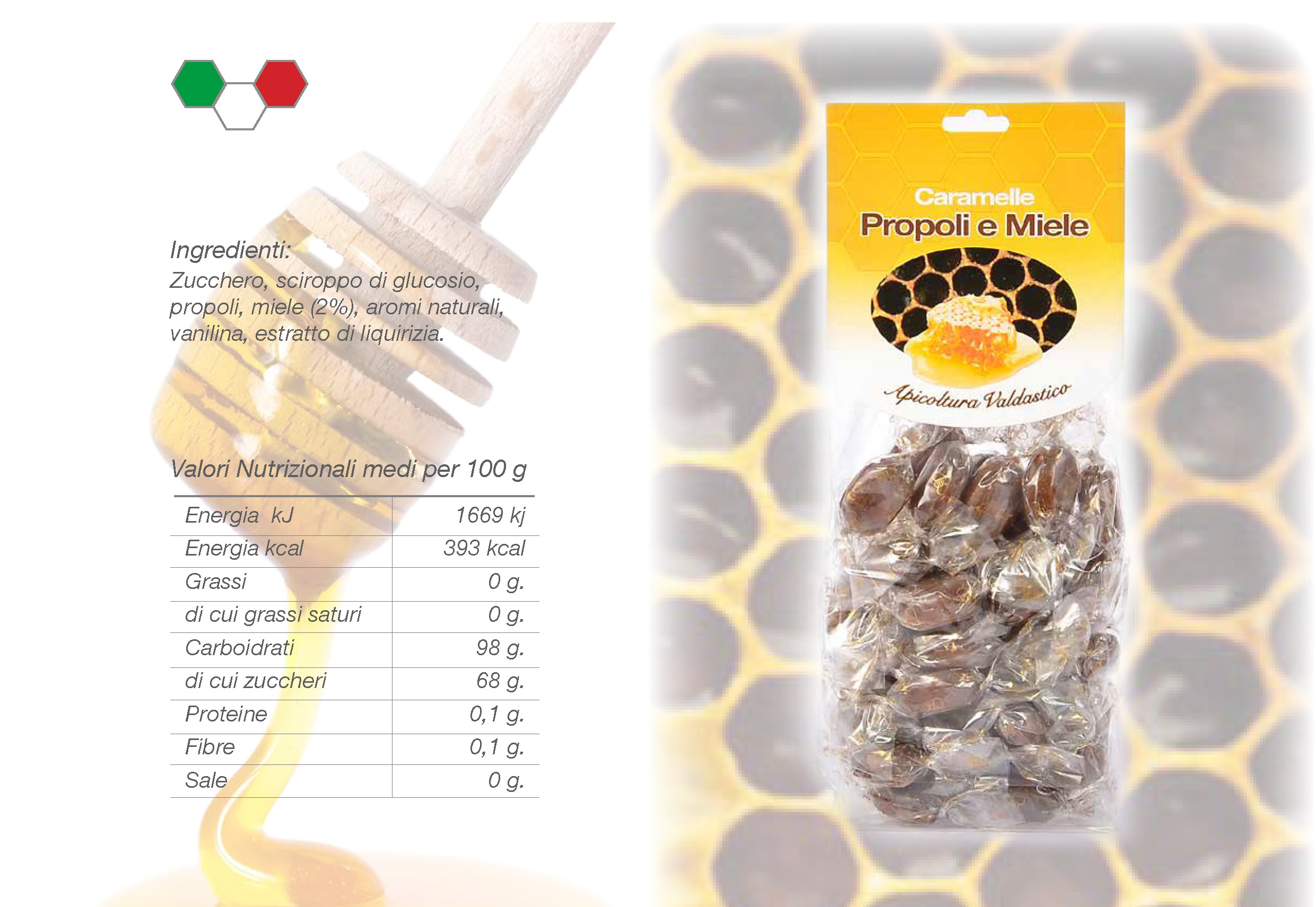 propoli, miele (2%), aromi naturali,