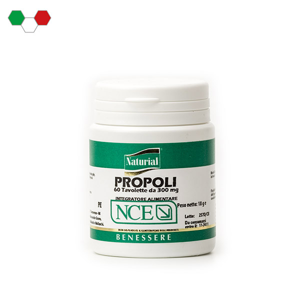 Ingredienti: Propoli resina depurata plv, Agente di carica: Cellulosa microcristallina, Aroma liquirizia, Aroma miele, Antiagglomerante: Biossido di silicio, Magnesio stearato vegetale.