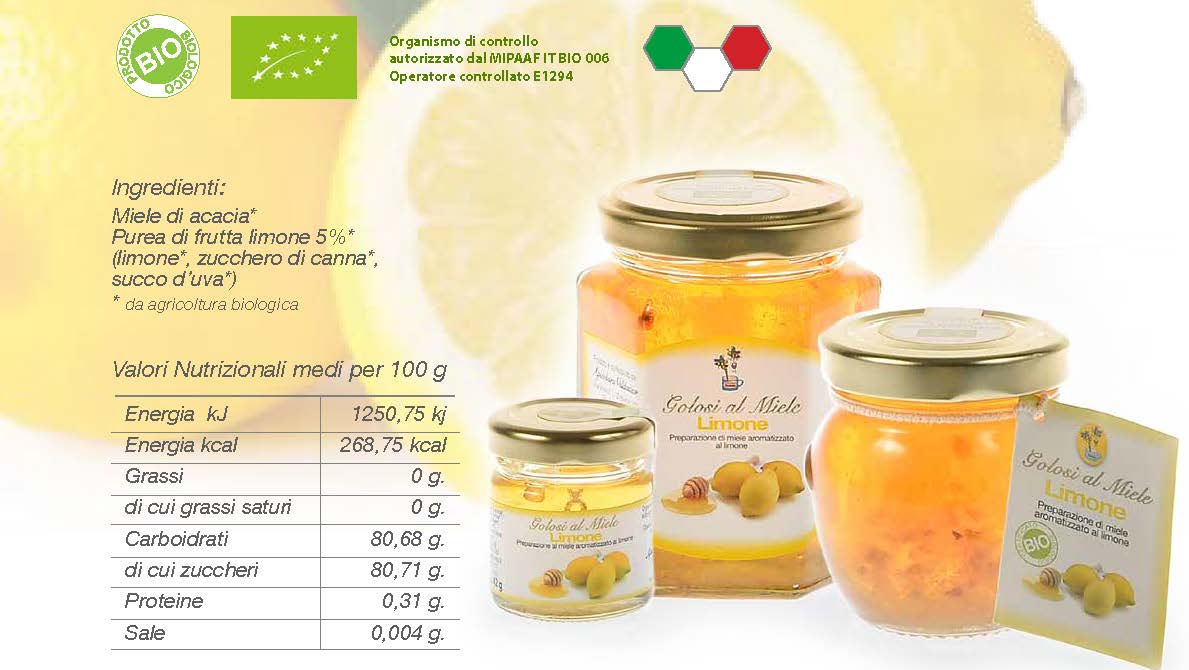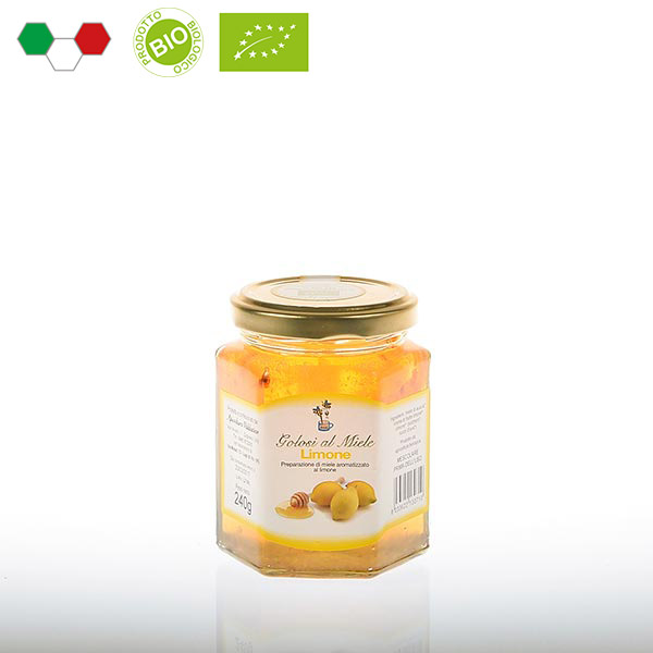 Succo e polpa di limone aggiunti al miele di acacia più pregiato prodotto da apicoltura biologica per una golosità tutta da scoprire. Spalmata sul pane o fette biscottate, è ottima come colazione e merenda. Piace anche a chi non mangia il miele! Originale ed apprezzata anche come idea regalo.