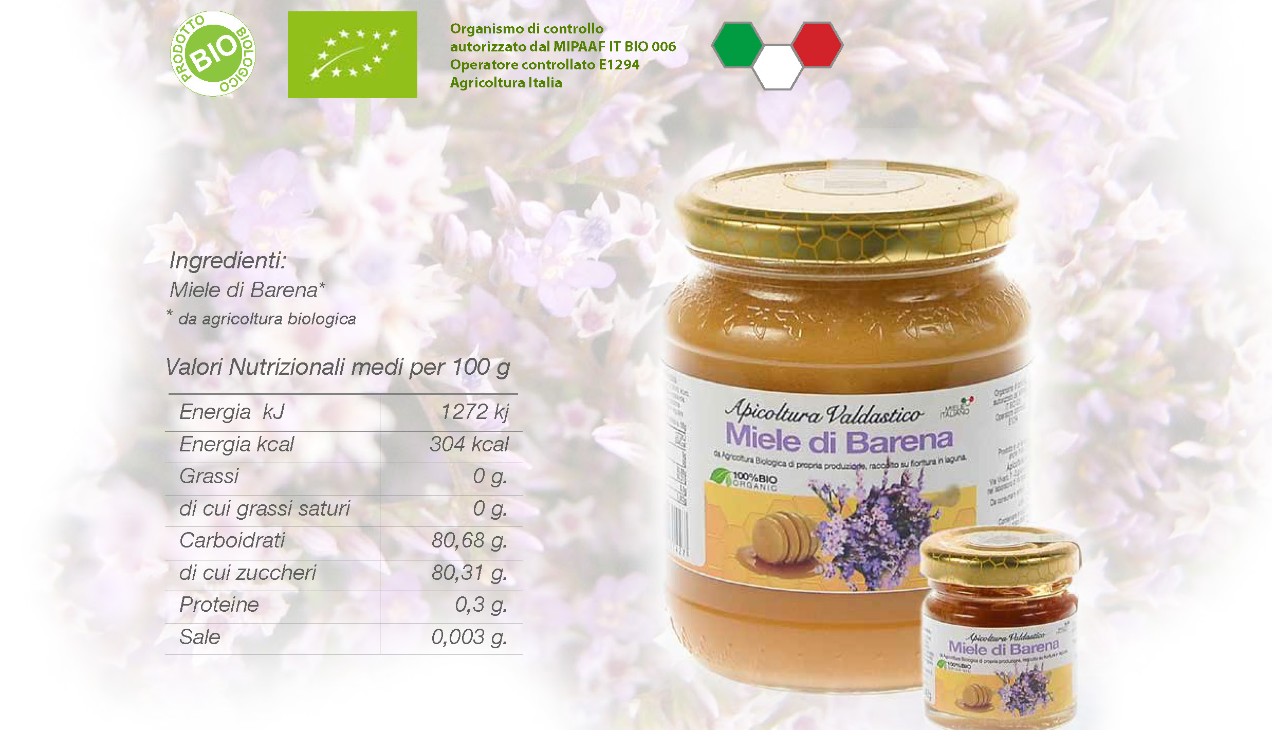Prodotto da apicoltura biologica. Le barene sono delle terre emerse a ridosso della laguna veneziana, su esse fiorisce il Limonium vulgare detto volgarmente “Fiorella di barena” che fiorisce da giugno a settembre, da cui si deriva appunto il miele omonimo. La produzione di questo miele risale alla fine dell’Ottocento ma oggi le barene su cui nasce questo fiore sono sempre più rare, perché vengono continuamente erose dal moto ondoso del mare. Le arnie vengono depositate sui margini delle barene e le api, non attratte da altro, si occupano solo della Fiorella di barena. Dal colore bruno chiaro ad un bruno scuro, profumo intenso e sapore gradevole, questo tipo di miele è energetico, ricco di sostanze minerali ed enzimi. Ha proprietà balsamiche per le vie respiratorie.