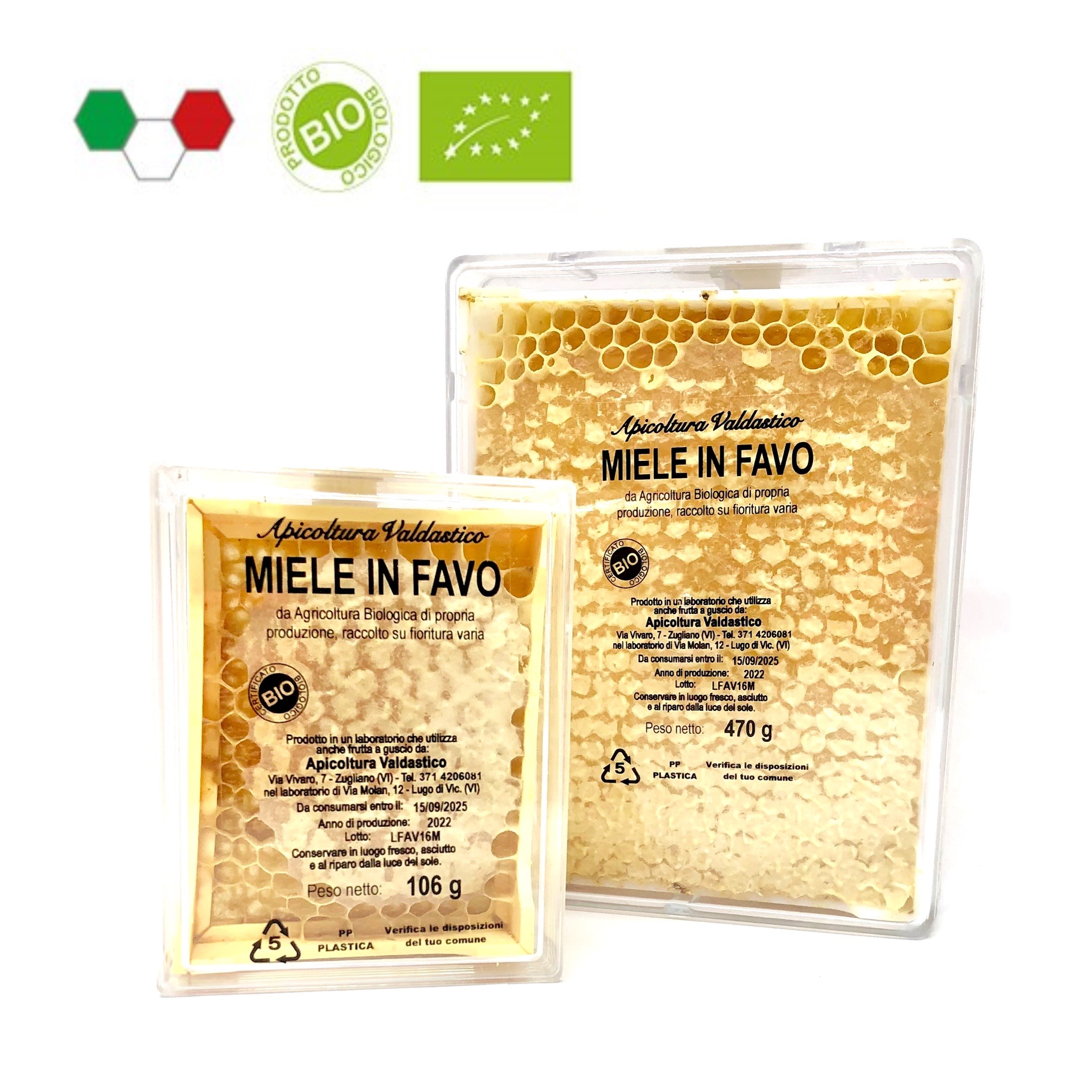 Porzione di favo con miele, direttamente dall’alveare senza alcuna lavorazione.