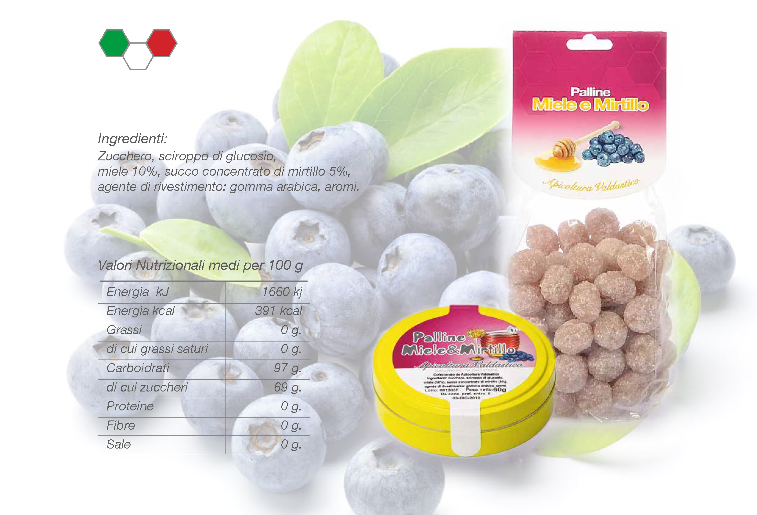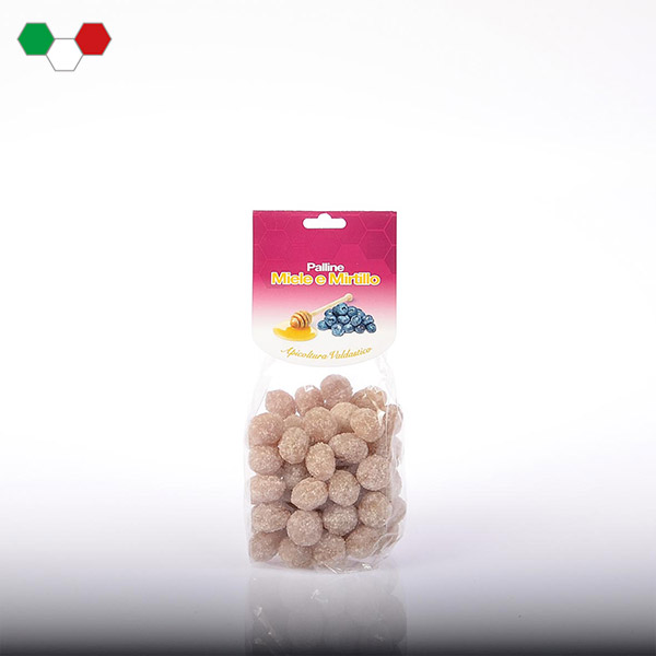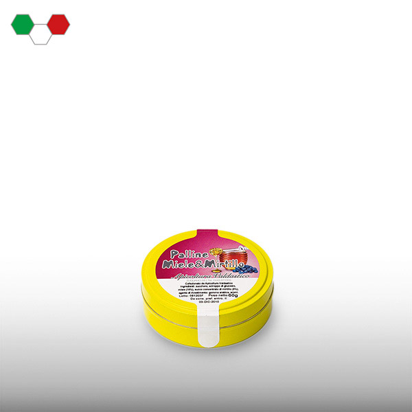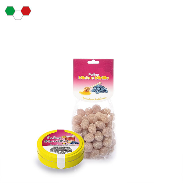 Deliziose caramelle al mirtillo e miele, in una pratica scatoletta metallica salva freschezza apri e chiudi, da portare sempre con se in tasca o in borsetta o in sacchetto da 150 grammi.