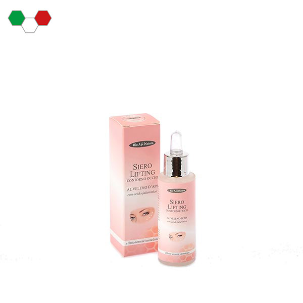 Prezioso siero lifting ad effetto immediato, appositamente studiato per la delicata e fragile zona del contorno occhi. La sua formula rivoluzionaria a base di veleno d’api, acido jaluronico e ad un mix di principi attivi vegetali regala un immediato benessere, distende le rughe e i segni d’espressione, attenua le occhiaie e i segni di stanchezza, tonifica il microcircolo sottocutaneo aiutando a prevenire le antiestetiche borse. Usato tutti i giorni protegge la zona pericolare donandole maggiore elasticità e rinnovata freschezza. Ottimo come base per il trucco.